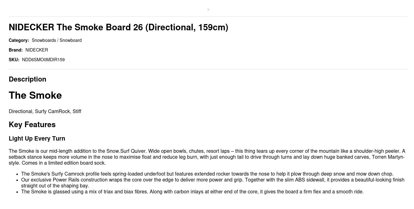 - The Smoke's Surfy Camrock profile feels spring-loaded underfoot but features extended rocker towards the nose to help it plow through deep snow and mow down chop.