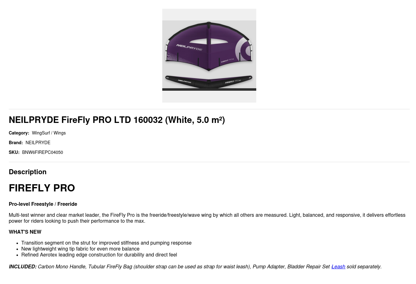 Multi-test winner and clear market leader, the FireFly Pro is the freeride/freestyle/wave wing by which all others are measured. Light, balanced, and responsive, it delivers effortless power for riders looking to push their performance to the max.