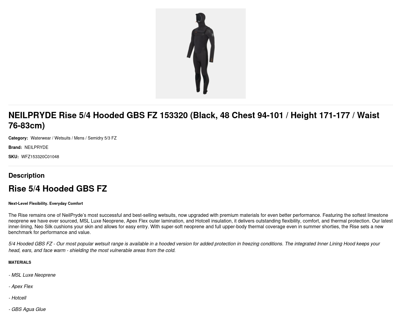 NEILPRYDE Rise 5/4 Hooded GBS FZ 153320