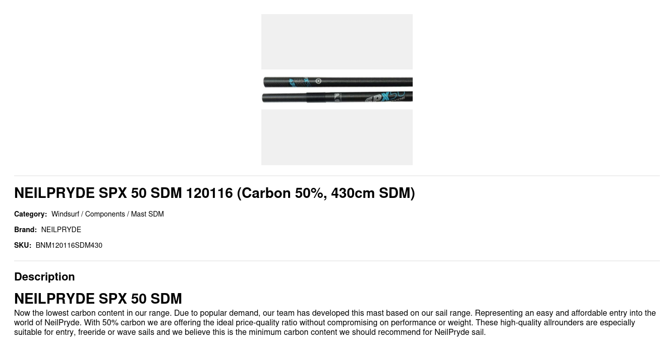 Now the lowest carbon content in our range. Due to popular demand, our team has developed this mast based on our sail range. Representing an easy and affordable entry into the world of NeilPryde. With 50% carbon we are offering the ideal price-quality ratio without compromising on performance or weight. These high-quality allrounders are especially suitable for entry, freeride or wave sails and we believe this is the minimum carbon content we should recommend for NeilPryde sail.