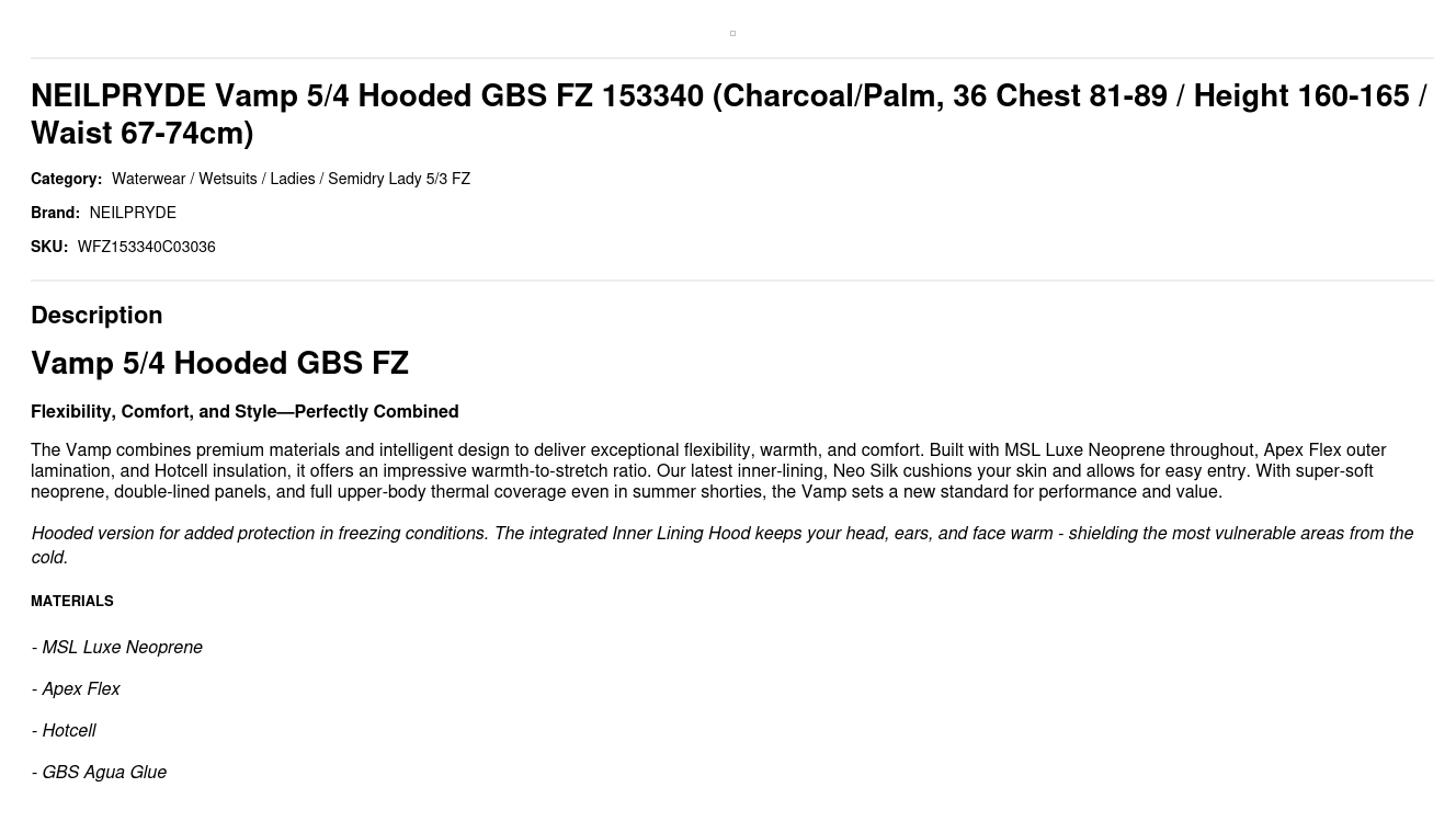 NEILPRYDE Vamp 5/4 Hooded GBS FZ 153340