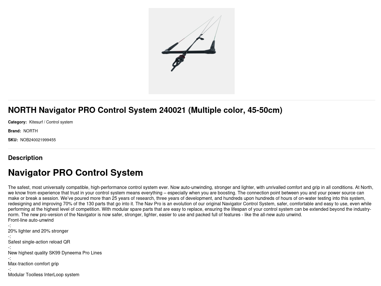The safest, most universally compatible, high-performance control system ever. Now auto-unwinding, stronger and lighter, with unrivalled comfort and grip in all conditions. At North, we know from experience that trust in your control system means everything – especially when you are boosting. The connection point between you and your power source can make or break a session. We’ve poured more than 25 years of research, three years of development, and hundreds upon hundreds of hours of on-water testing into this system, redesigning and improving 70% of the 130 parts that go into it. The Nav Pro is an evolution of our original Navigator Control System, safer, comfortable and easy to use, even while performing at the highest level of competition. With modular spare parts that are easy to replace, ensuring the lifespan of your control system can be extended beyond the industry-norm. The new pro-version of the Navigator is now safer, stronger, lighter, easier to use and packed full of features - like the all-new auto unwind.