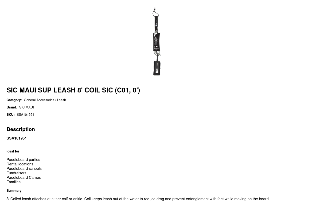 HOME / PRODUCTS / SIC MAUI SUP LEASH 8' COIL SIC