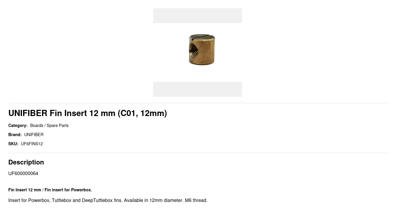 Insert for Powerbox, Tuttlebox and DeepTuttlebox fins. Available in 12mm diameter. M6 thread.