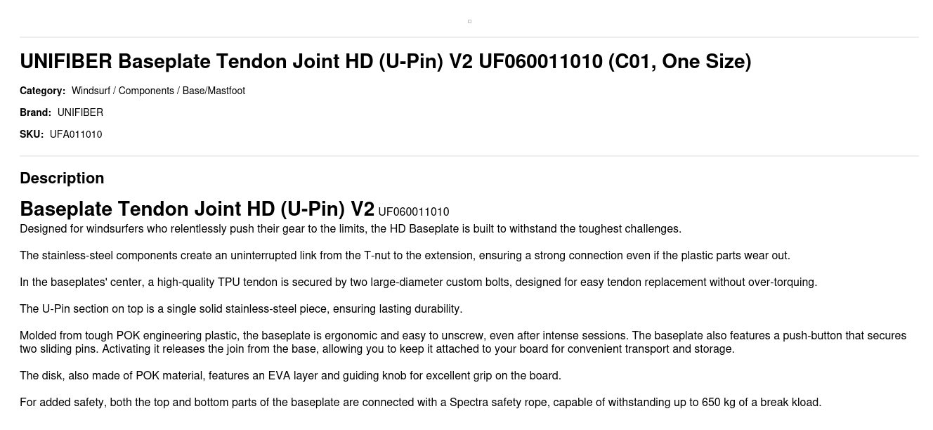 UNIFIBER Baseplate Tendon Joint HD (U-Pin) V2 UF0600