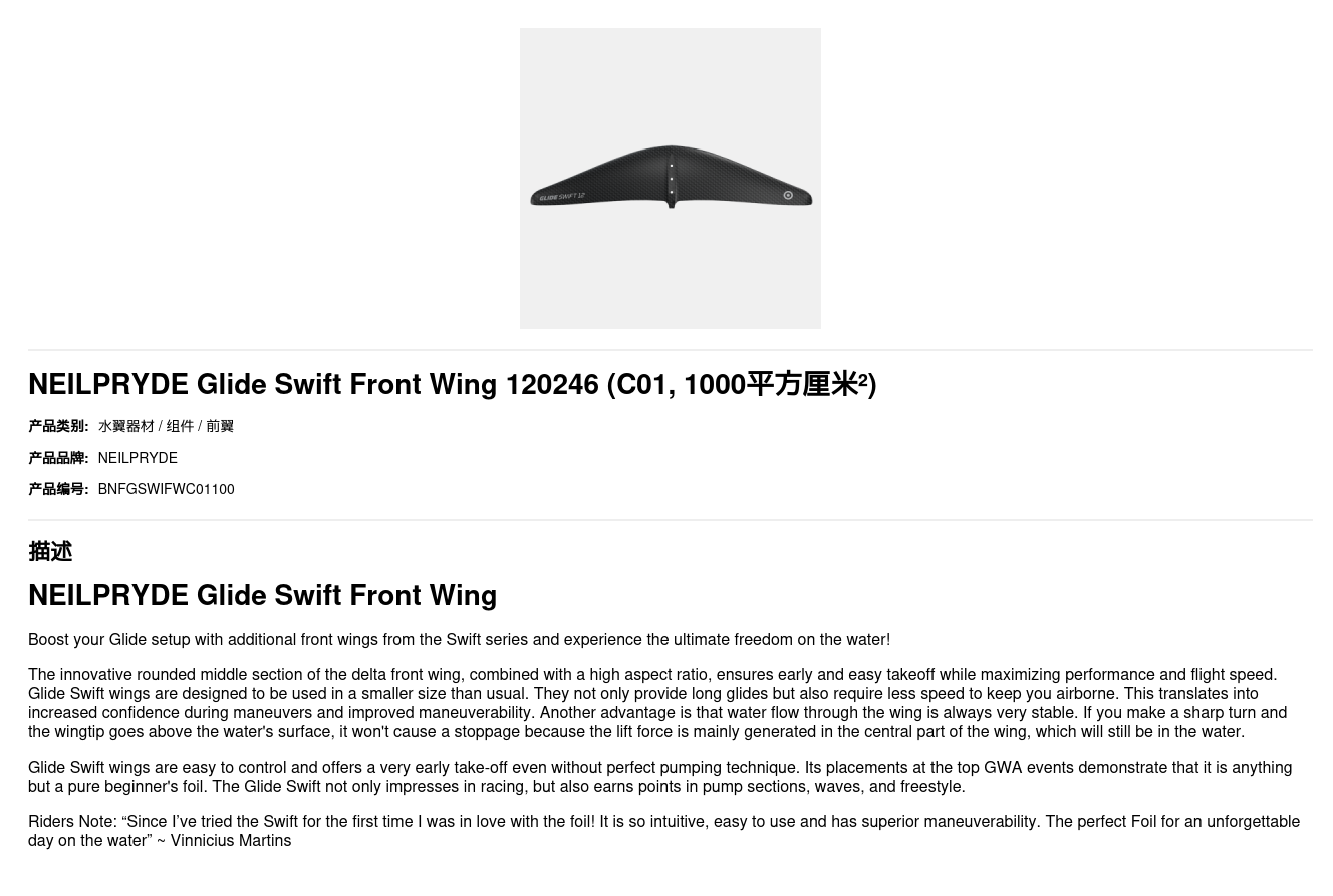 NEILPRYDE Glide Swift Front Wing 120246