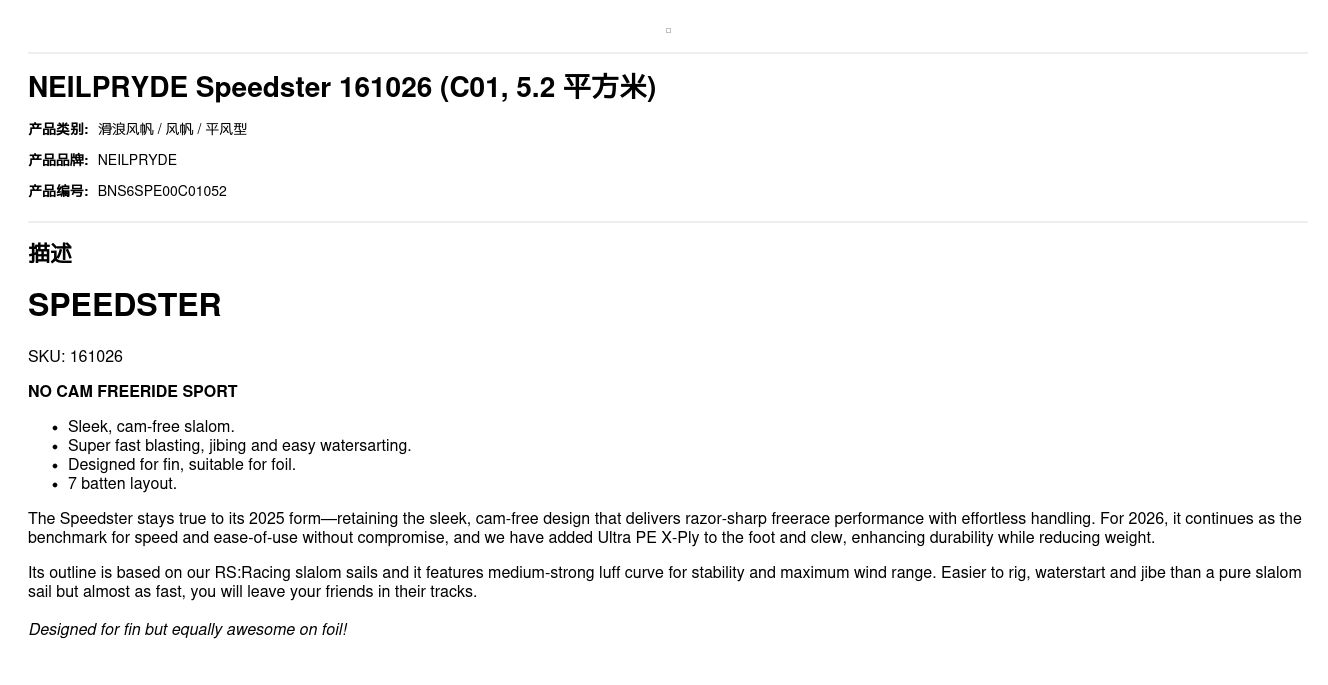 The Speedster stays true to its 2025 form—retaining the sleek, cam-free design that delivers razor-sharp freerace performance with effortless handling. For 2026, it continues as the benchmark for speed and ease-of-use without compromise, and we have added Ultra PE X-Ply to the foot and clew, enhancing durability while reducing weight.