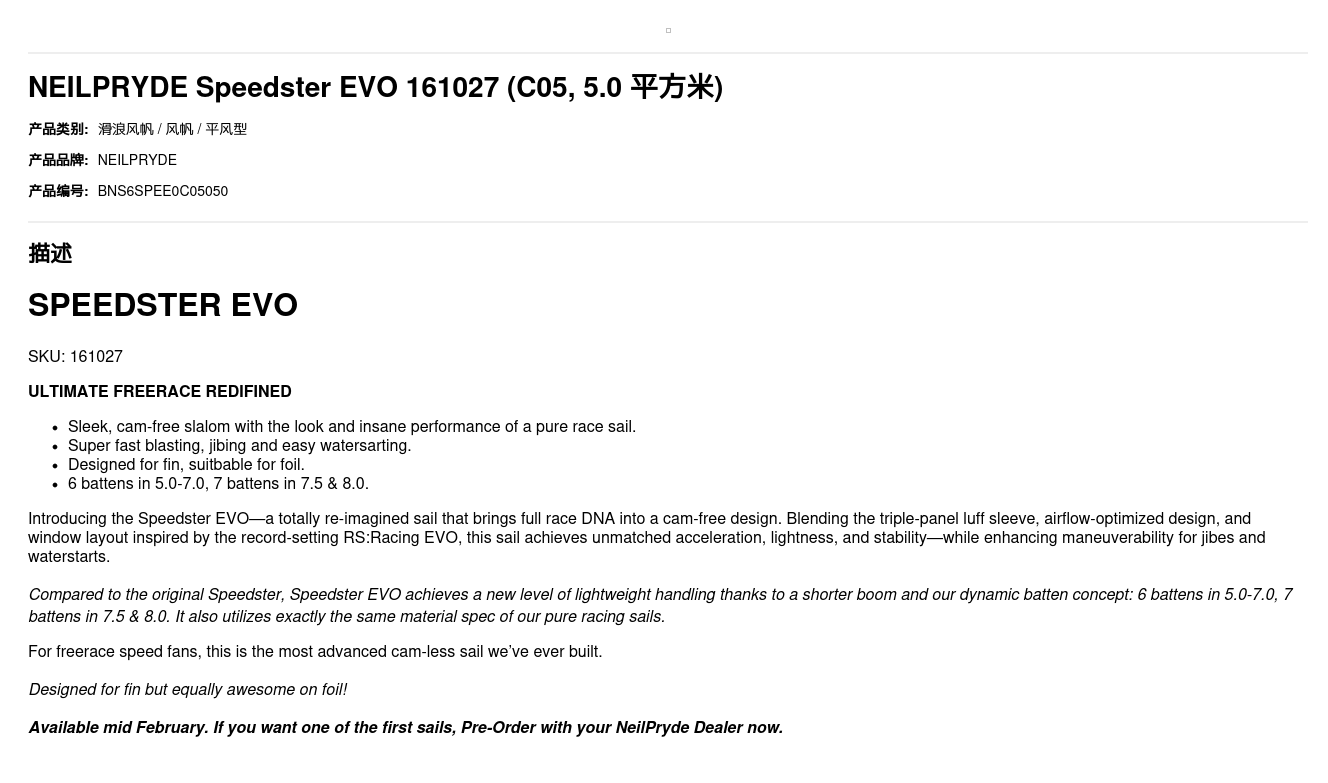 Compared to the original Speedster, Speedster EVO achieves a new level of lightweight handling thanks to a shorter boom and our dynamic batten concept: 6 battens in 5.0-7.0, 7 battens in 7.5 & 8.0. It also utilizes exactly the same material spec of our pure racing sails.