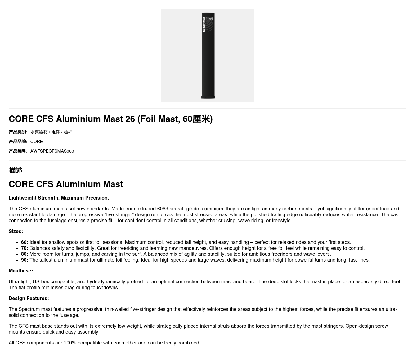 CORE CFS Aluminium Mast 26
