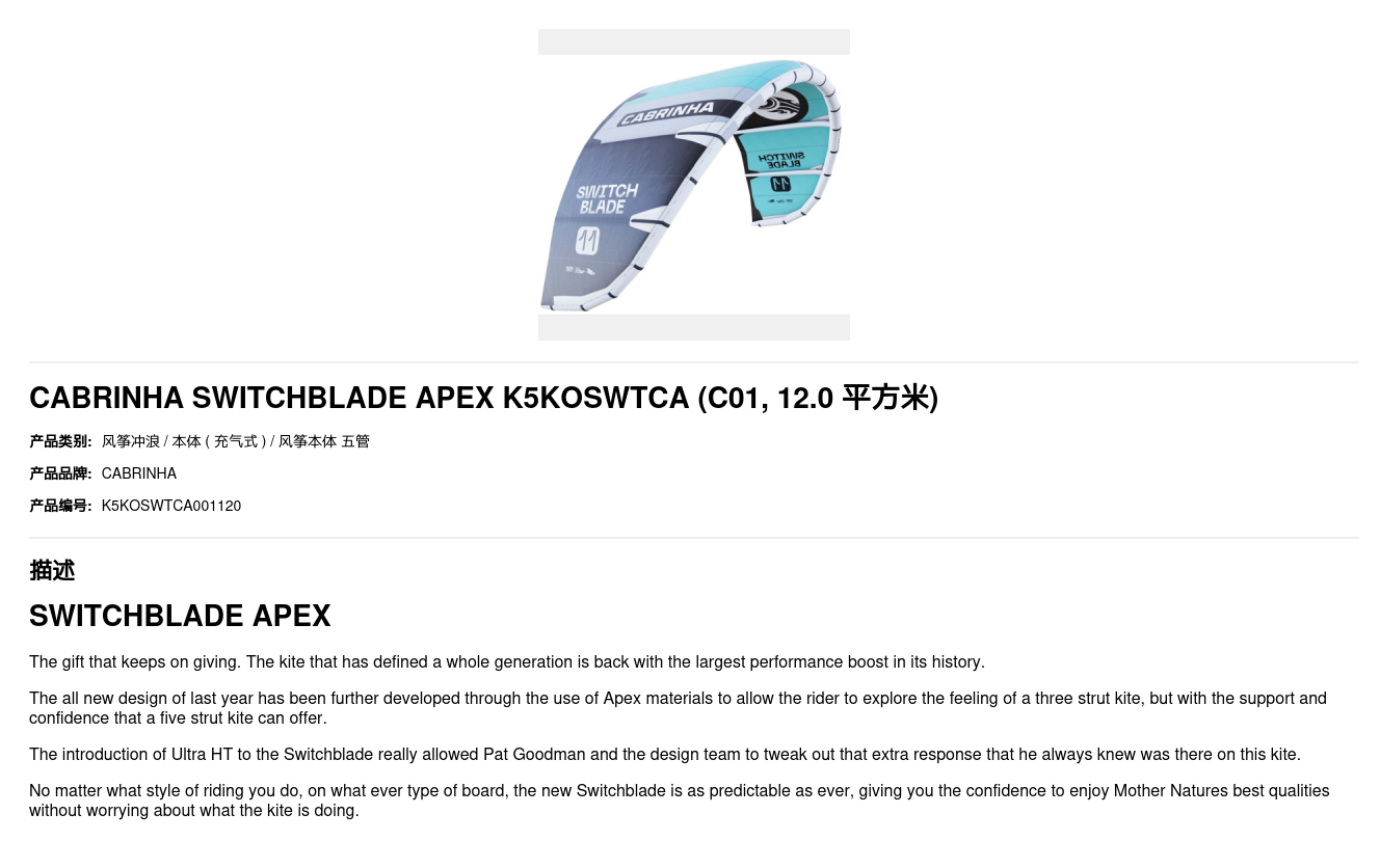 CABRINHA SWITCHBLADE APEX K5KOSWTCA