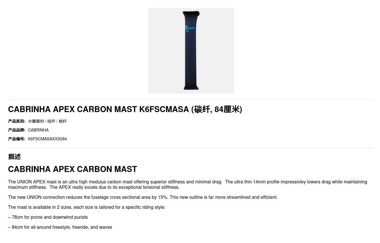 CABRINHA APEX CARBON MAST K6FSCMASA