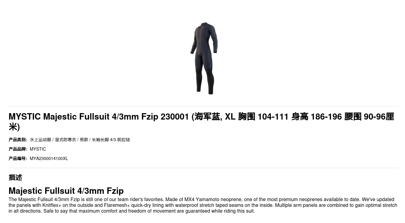 MYSTIC Majestic Fullsuit 4/3mm Fzip 230001