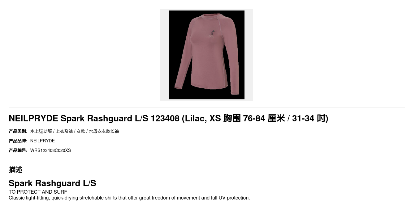 | 尺寸 | XS 胸围 76-84 厘米 / 31-34 吋, S 胸围 81-89 厘米 / 33-36 吋, M 胸围 86-94 厘米 / 35-38 吋, L 胸围 91-99 厘米 / 37-40 吋, XL 胸围 94-102 厘米 / 39-42 吋 |