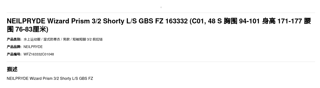 HOME / PRODUCTS / NEILPRYDE Wizard Prism 3/2 Shorty L/S GBS FZ 163332