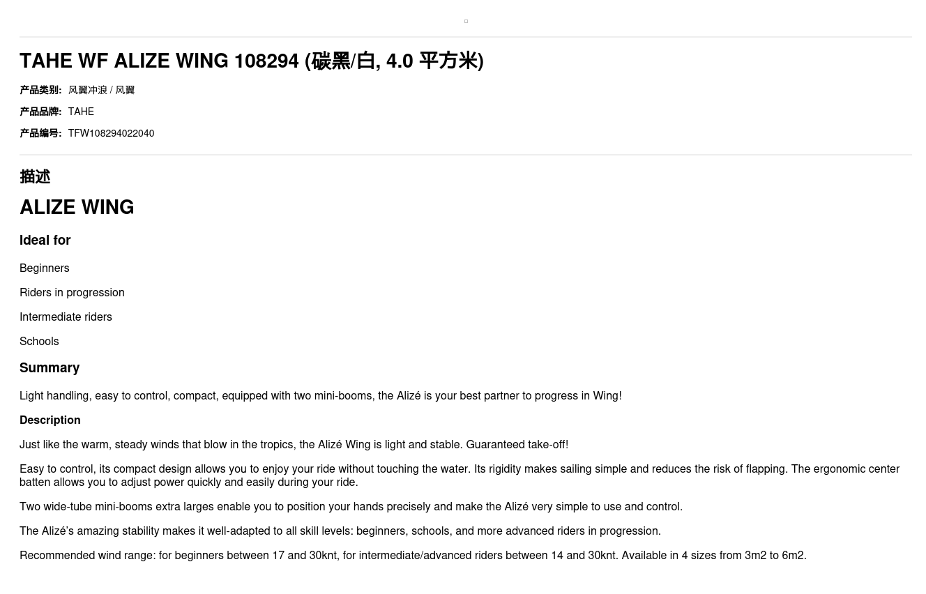 HOME / PRODUCTS / TAHE WF ALIZE WING 108294
