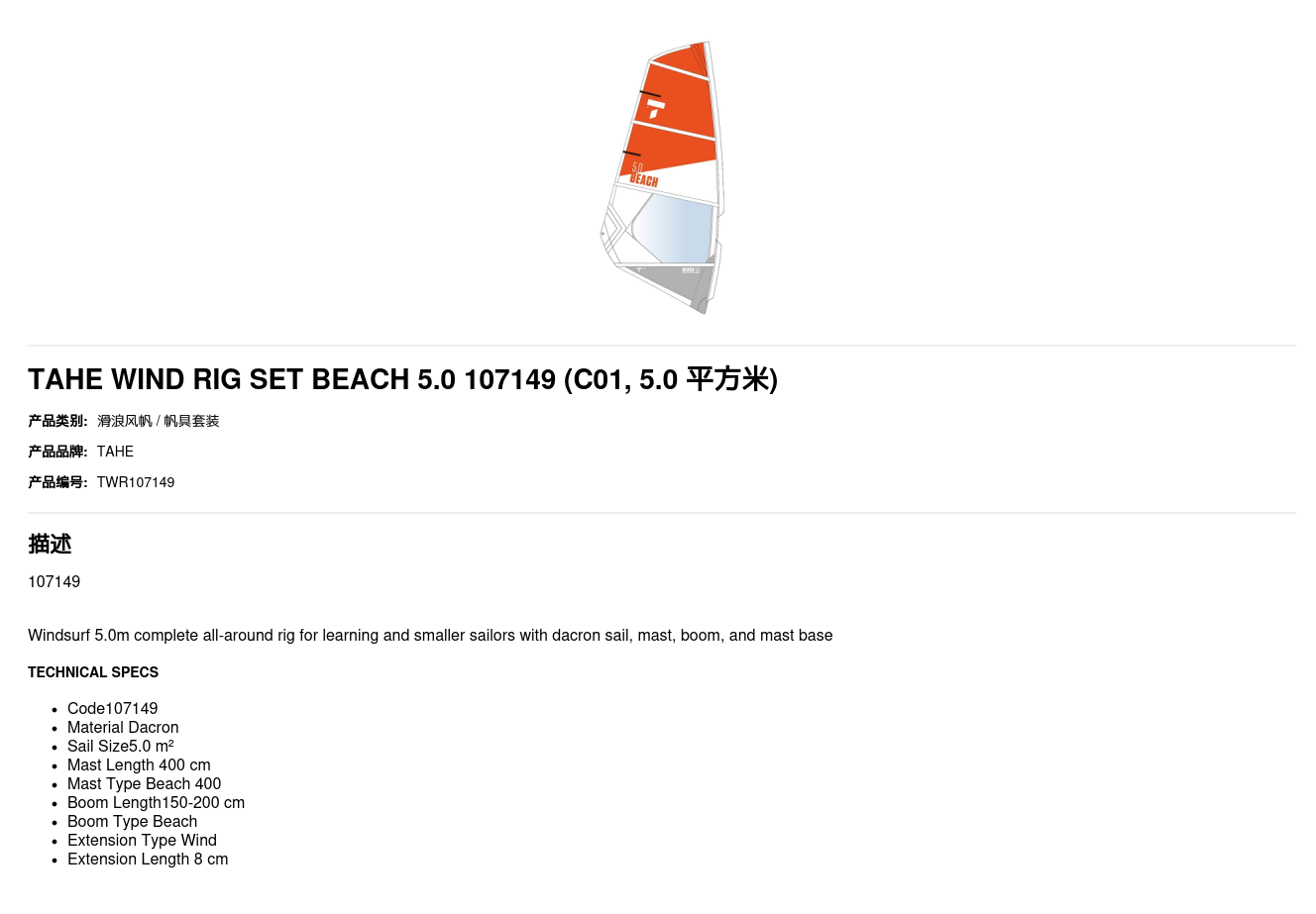 HOME / PRODUCTS / TAHE WIND RIG SET BEACH 5.0 107149