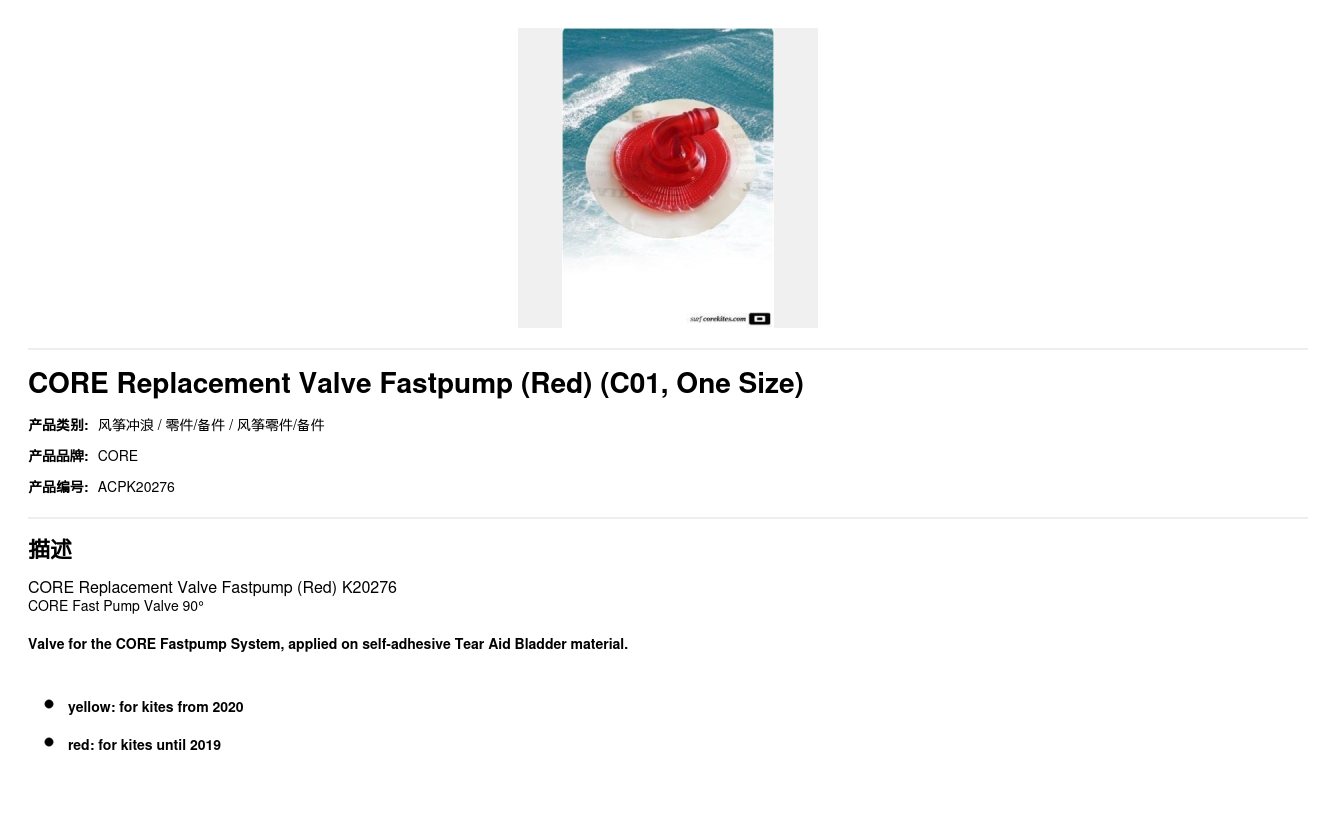 Valve for the CORE Fastpump System, applied on self-adhesive Tear Aid Bladder material.- yellow: for kites from 2020