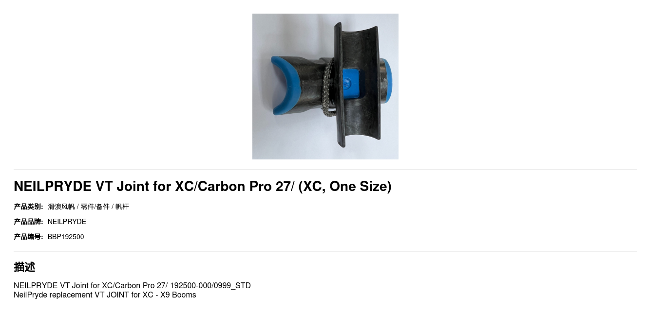 NeilPryde replacement VT JOINT for XC - X9 Booms