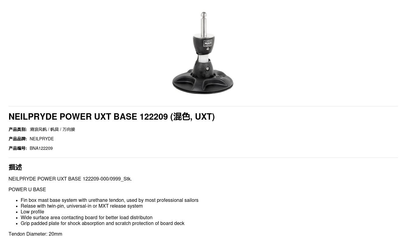- Fin box mast base system with urethane tendon, used by most professional sailors