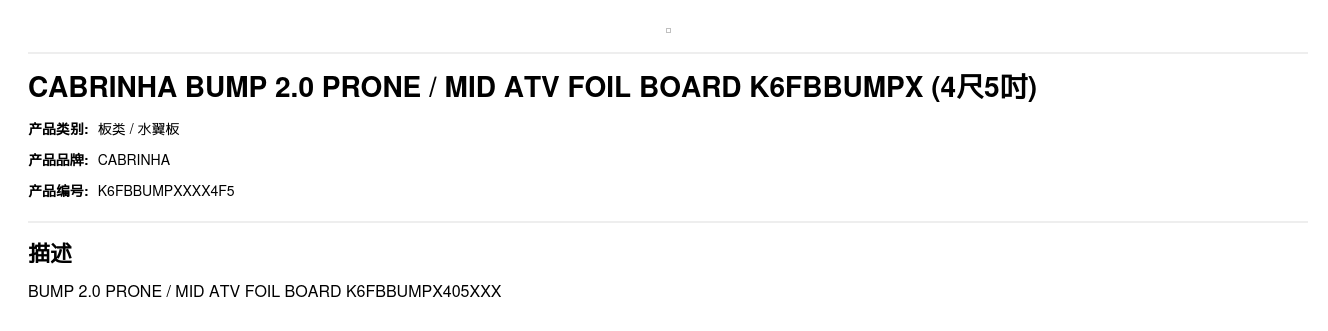 HOME / PRODUCTS / CABRINHA BUMP 2.0 PRONE / MID ATV FOIL BOARD K6FBBUMPX