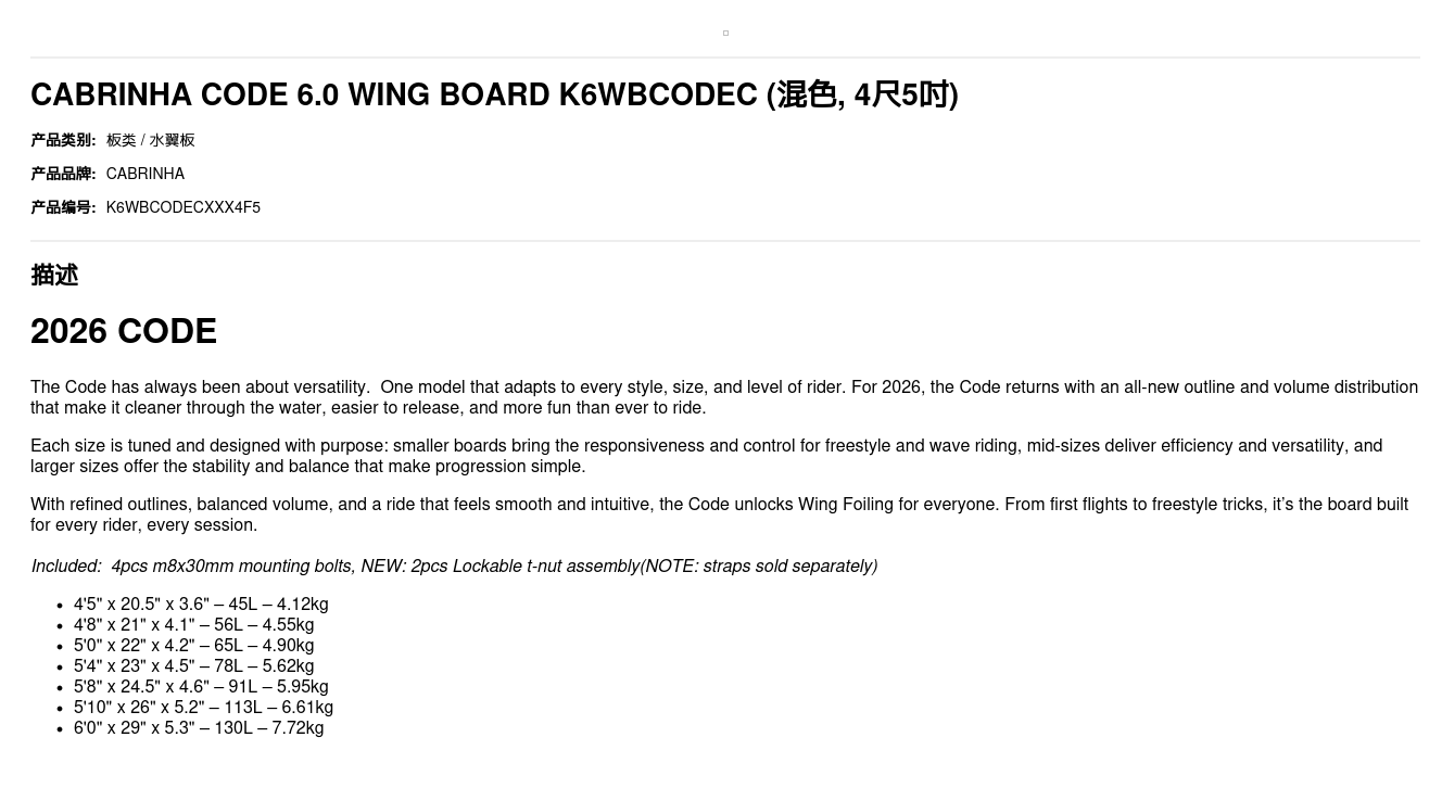 CABRINHA CODE 6.0 WING BOARD K6WBCODEC