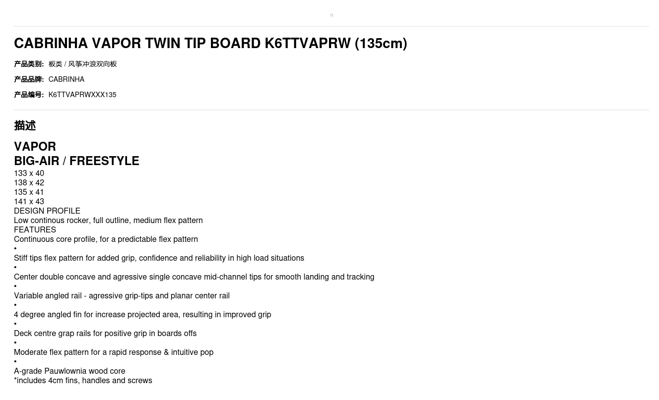 CABRINHA VAPOR TWIN TIP BOARD K6TTVAPRW