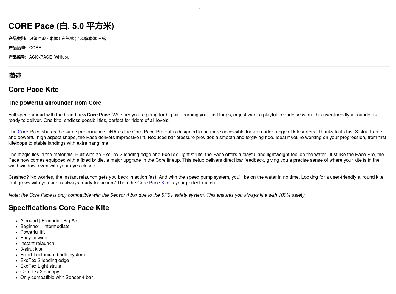 Note: the Core Pace is only compatible with the Sensor 4 bar due to the SFS+ safety system. This ensures you always kite with 100% safety.