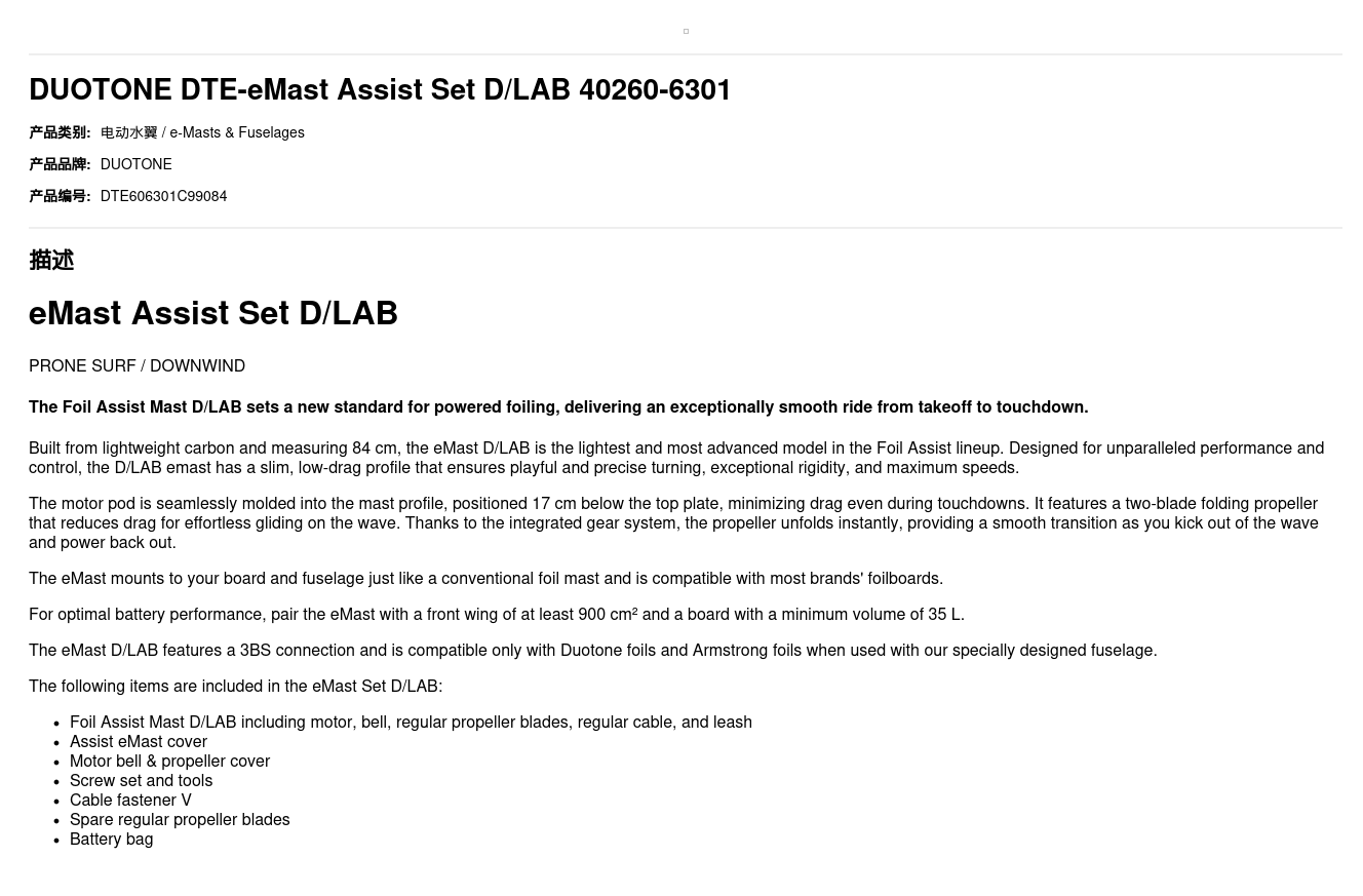 HOME / PRODUCTS / DUOTONE DTE-eMast Assist Set D/LAB 40260-6301