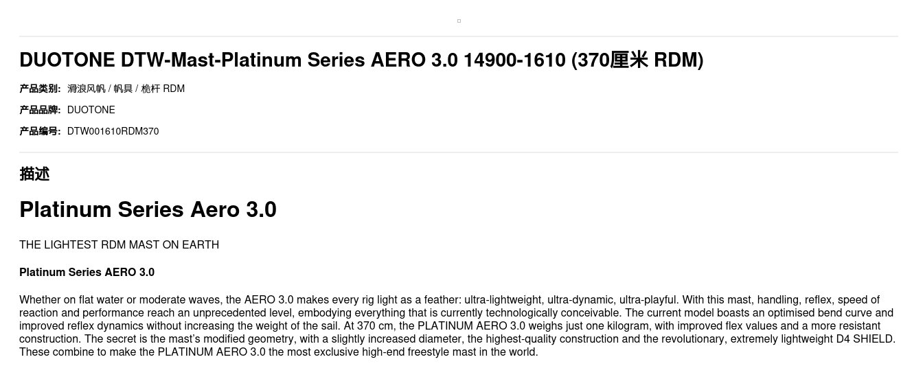 DUOTONE DTW-Mast-Platinum Series AERO 3.0 14900-1610