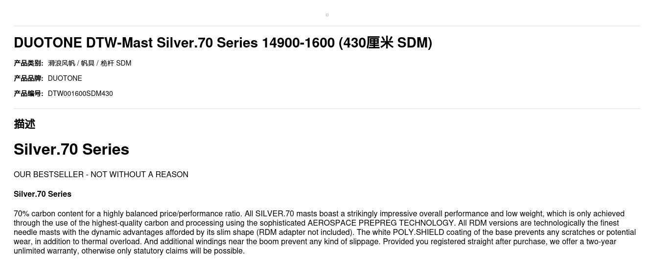 DUOTONE DTW-Mast Silver.70 Series 14900-1600