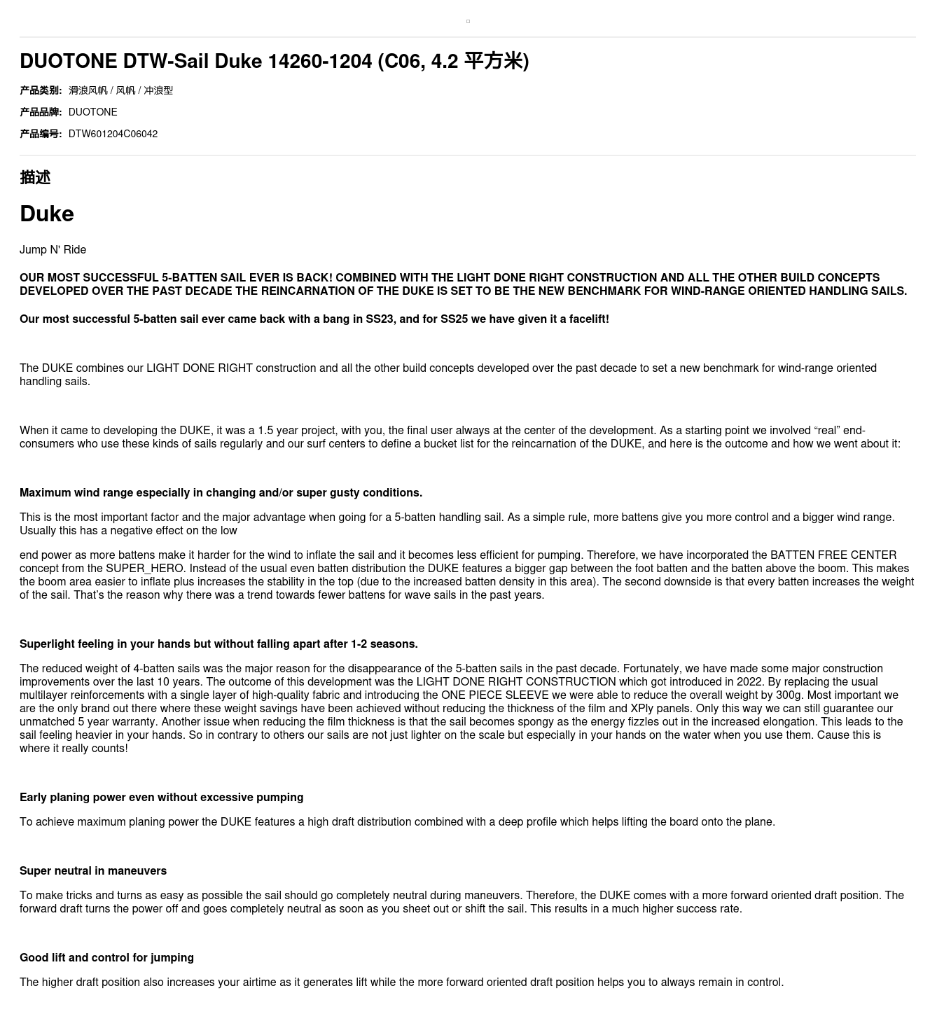 OUR MOST SUCCESSFUL 5-BATTEN SAIL EVER IS BACK! COMBINED WITH THE LIGHT DONE RIGHT CONSTRUCTION AND ALL THE OTHER BUILD CONCEPTS DEVELOPED OVER THE PAST DECADE THE REINCARNATION OF THE DUKE IS SET TO BE THE NEW BENCHMARK FOR WIND-RANGE ORIENTED HANDLING SAILS.