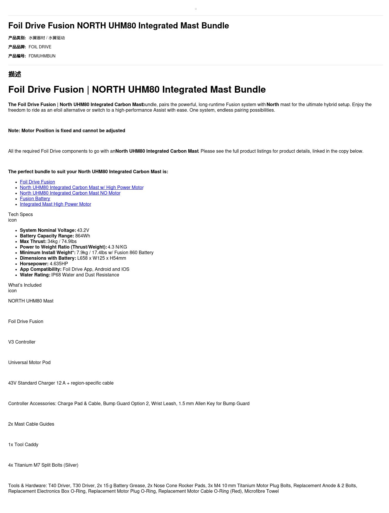 Foil Drive Fusion NORTH UHM80 Integrated Mast Bundle