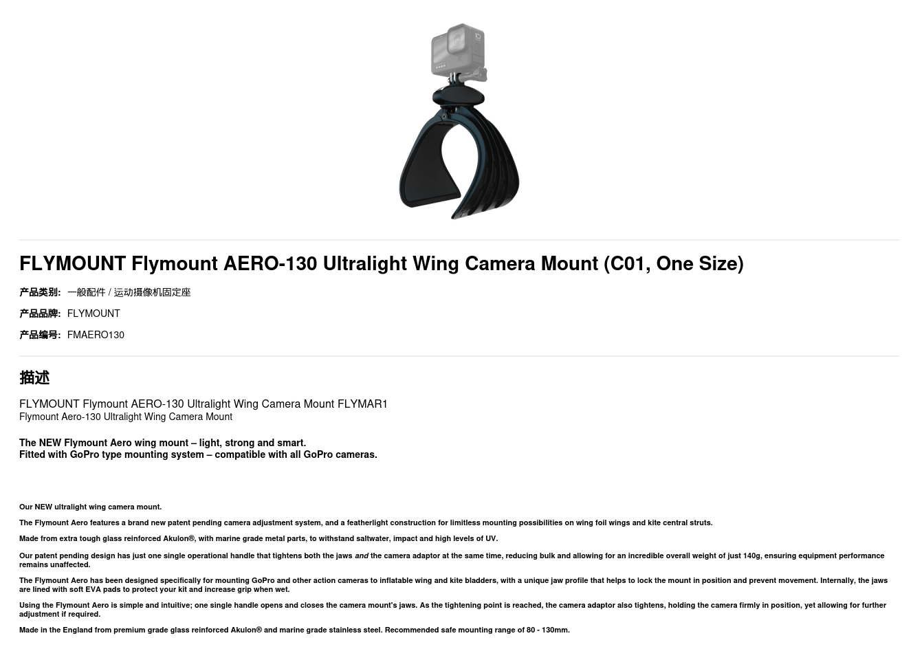 The NEW Flymount Aero wing mount – light, strong and smart.Fitted with GoPro type mounting system – compatible with all GoPro cameras.