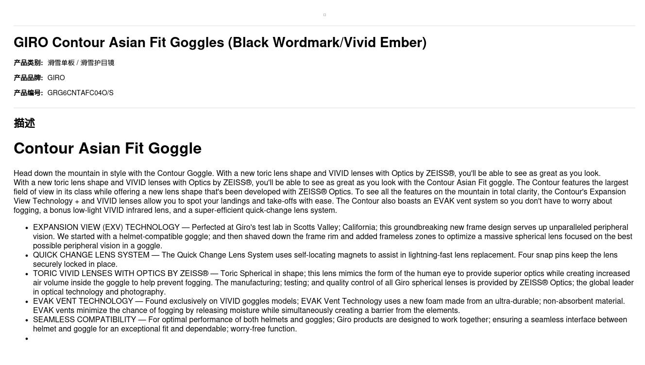 GIRO Contour Asian Fit Goggles