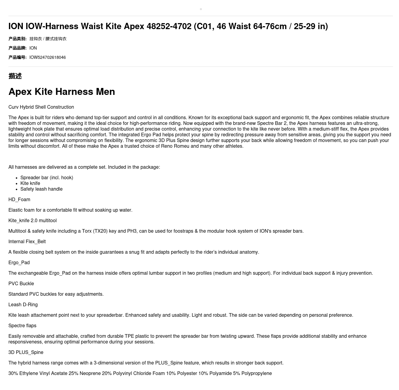 ION IOW-Harness Waist Kite Apex 48252-4702