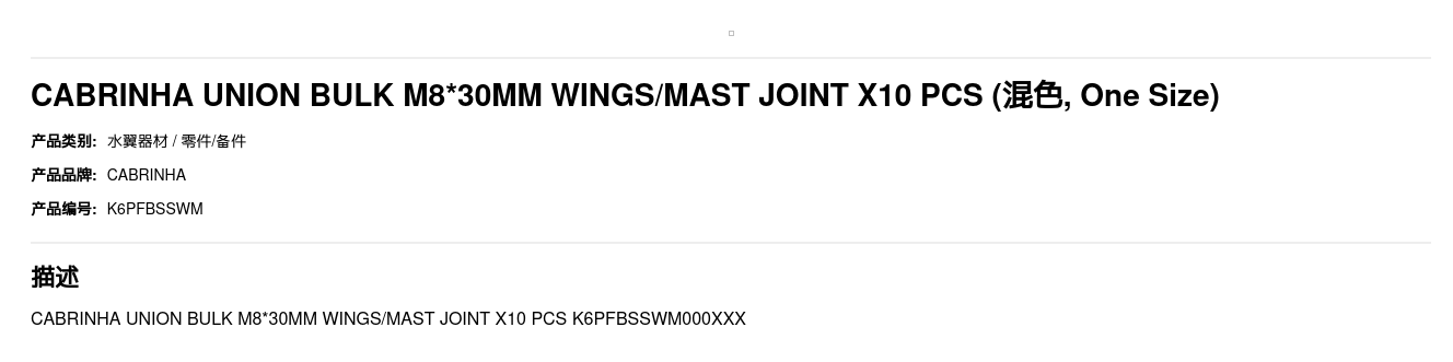 CABRINHA UNION BULK M8*30MM WINGS/MAST JOINT X10 PCS K6PFBSSWM000XXX