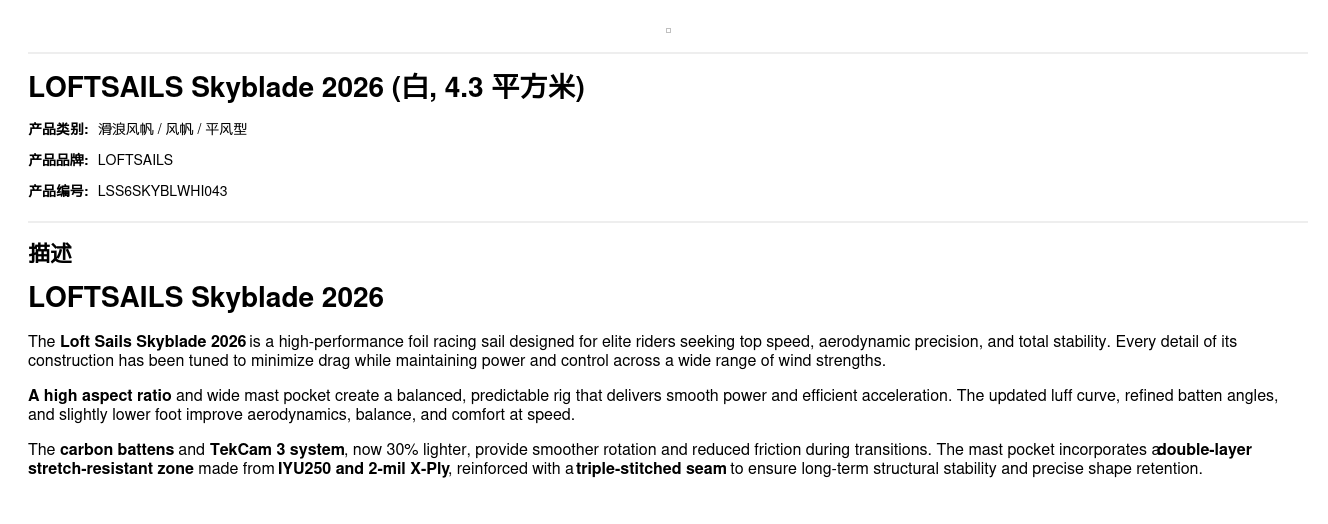 The Loft Sails Skyblade 2026 is a high-performance foil racing sail designed for elite riders seeking top speed, aerodynamic precision, and total stability. Every detail of its construction has been tuned to minimize drag while maintaining power and control across a wide range of wind strengths.