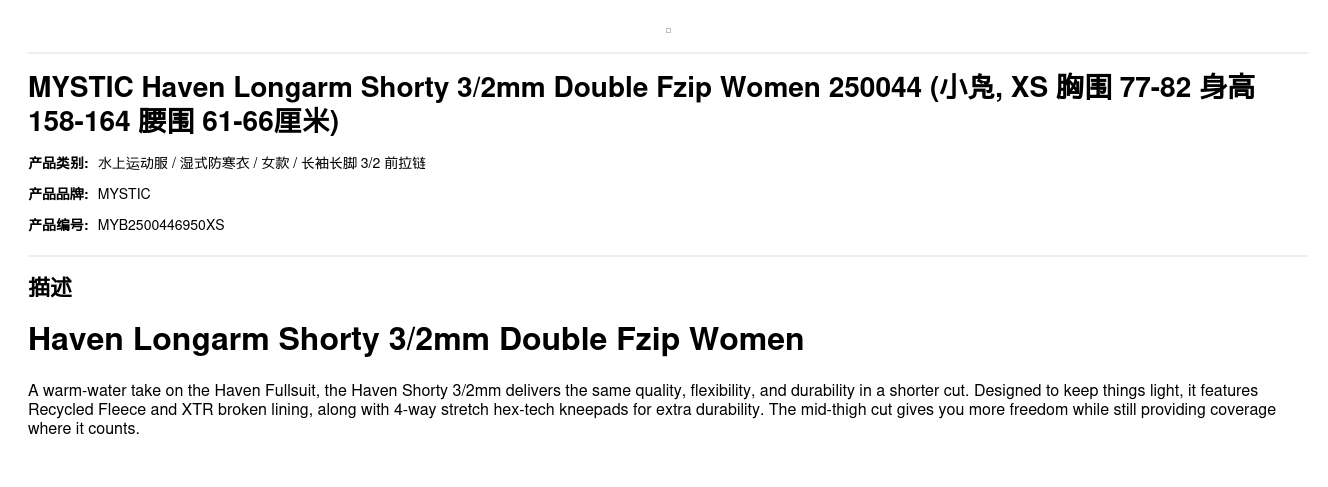 MYSTIC Haven Longarm Shorty 3/2mm Double Fzip Women 250044