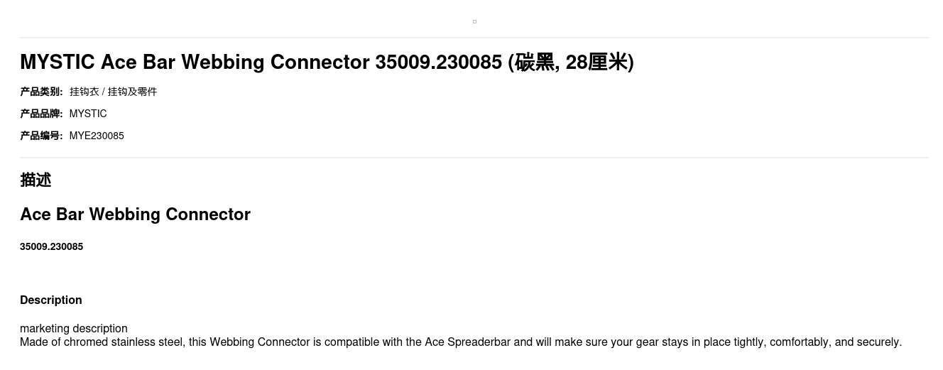 MYSTIC Ace Bar Webbing Connector 35009.230085