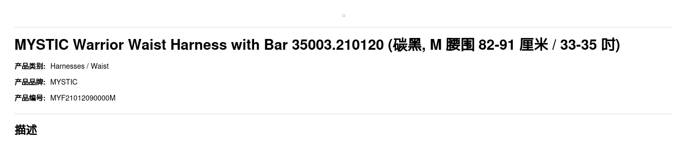 MYSTIC Warrior Waist Harness with Bar 35003.210120