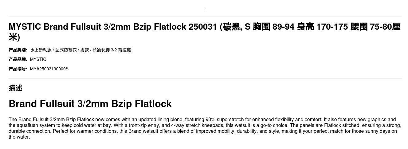 MYSTIC Brand Fullsuit 3/2mm Bzip Flatlock 250031