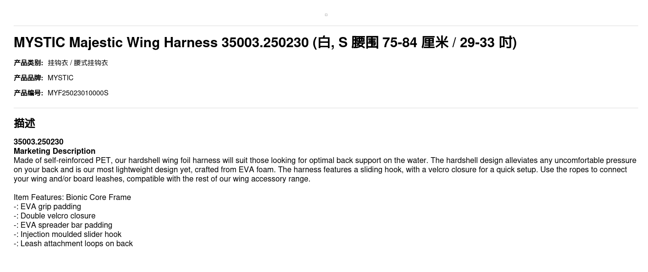 MYSTIC Majestic Wing Harness 35003.250230
