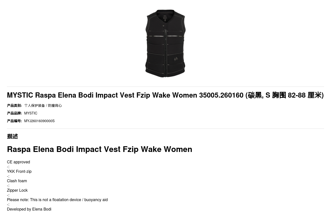 MYSTIC Raspa Elena Bodi Impact Vest Fzip Wake Women 35005.260160