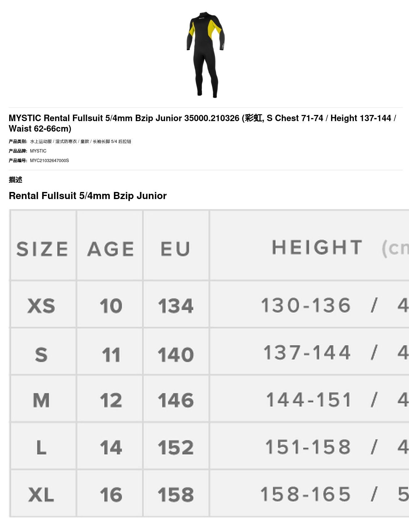 MYSTIC Rental Fullsuit 5/4mm Bzip Junior 35000.210326