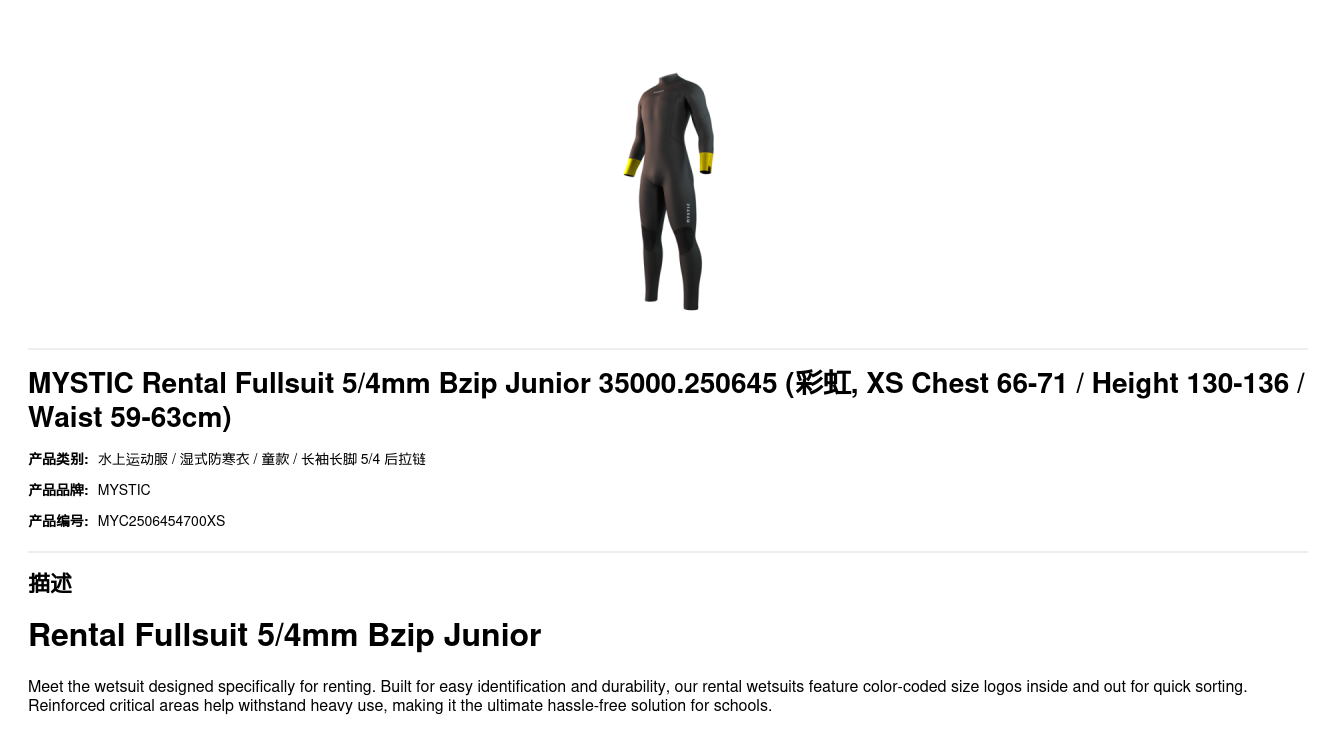 MYSTIC Rental Fullsuit 5/4mm Bzip Junior 35000.250645