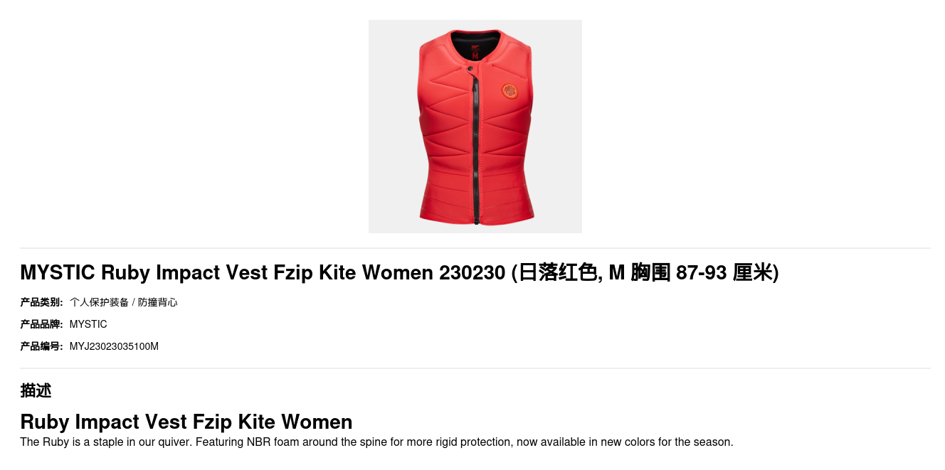 MYSTIC Ruby Impact Vest Fzip Kite Women 230230