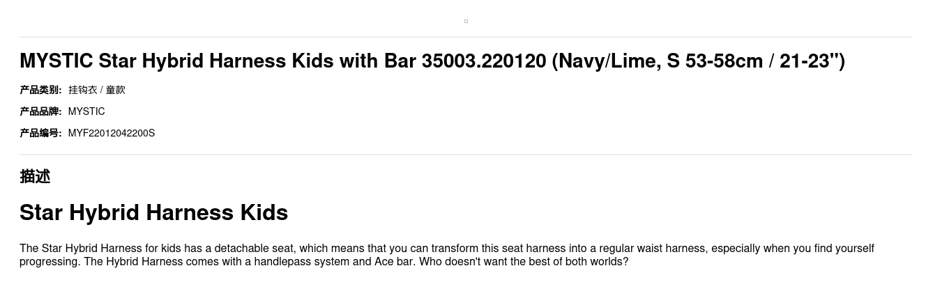 MYSTIC Star Hybrid Harness Kids with Bar 35003.220120