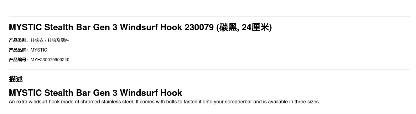 MYSTIC Stealth Bar Gen 3 Windsurf Hook 230079