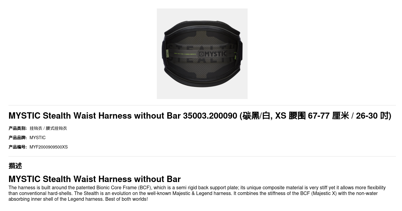 MYSTIC Stealth Waist Harness without Bar 35003.200090