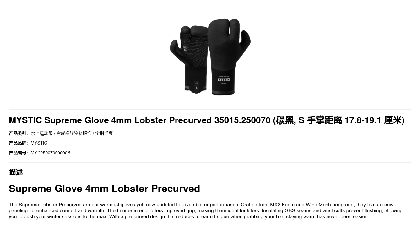 MYSTIC Supreme Glove 4mm Lobster Precurved 35015.250070